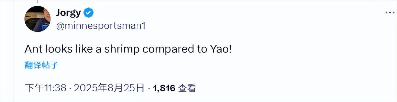 北京时间8月26日,森林狼球星爱德华兹向来不吝于发表大胆言论。近期他在中国行的一番表态,再次引起热议。这位24岁的后卫在社交媒体上自信宣称,他能隔扣中国篮球传奇人物——身高2米26的名人堂成员姚明。